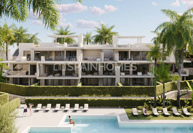Sea and Mountain-View Flats in a Complex near the Beach in Estepona Málaga