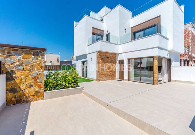 Die zum Verkauf stehenden Villen in Benijófar Alicante verfügen über helle, offene Innenräume mit 3 Badezimmern, einer voll ausgestatteten Küche und einem geräumigen Keller mit Stauraum. Das große Solarium bietet einen Panoramablick und ist ideal für das Leben im Freien.