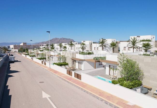 Diese neue Wohnanlage besteht aus 12 Doppelhaushälften, die sich in einem Wohngebiet von Puerto de Mazarrón befinden. Jedes Haus befindet sich auf einem Eckgrundstück mit privatem Parkplatz und der Möglichkeit, einen Swimmingpool hinzuzufügen. Das Projekt ist mit modernen Annehmlichkeiten ausgestattet und bietet einen komfortablen Lebensstil.