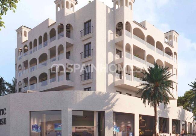 Cada piso cuenta con un luminoso salón-comedor de concepto abierto conectado a una cocina moderna. La distribución incluye dos dormitorios con armarios empotrados, un baño y un aseo independiente. Todos los pisos disponen de terrazas privadas. Los pisos en planta baja ofrecen zonas exteriores más amplias, mientras que las plantas superiores incluyen soláriums privados en la azotea.