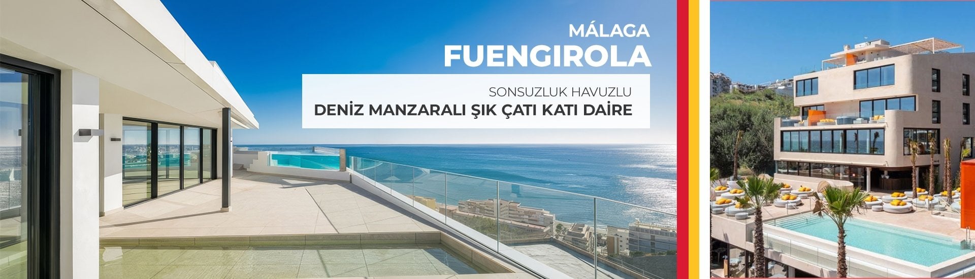 - Fuengirola, Málaga’daki daire; açık planlı yaşam alanlarıyla öne çıkmaktadır. Anahtar teslim dairede, deniz manzaralı özel sonsuzluk havuzlu bir teras bulunmaktadır.