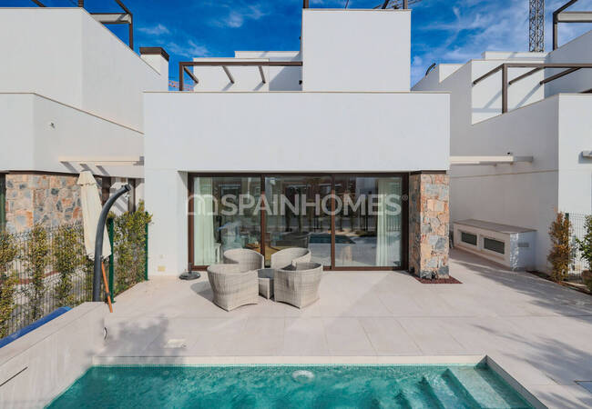 Bu şık 2 ve 3 yatak odalı evler, bir oturma odası ve tam donanımlı bir mutfak içeren modern açık plan düzenlerine sahiptir. Zemin katta bir yatak odası ve banyo bulunurken, üst katta ebeveyn banyolu geniş bir ana yatak odası ve 12 m²'lik özel bir terasa erişim vardır. Tüm banyolarda yerden ısıtma sistemi ve evlerde kanallı klima bulunmaktadır. Spor salonu, ofis veya depolama için mükemmel olan geniş bodrum katı ekstra alan sağlarken, elektrikli araç şarj noktasına sahip özel otopark da evlere dahildir.